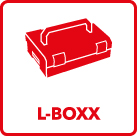 Kestävä säilytys- ja kuljetusjärjestelmä L-BOXX® Tehty iskun kestävästä muovista, työkalujen ja tarvikkeiden helppo ja turvallinen kuljetus käyttöpaikalle. Tarkkaan harkittu sisäosa helpottaa järjestelyä Ergonomiset kädensijat sekä erityismuotoilu tuovat käsittelyyn joustavuutta ja varmuutta. L-BOXX® ien toisiinsa liittäminen ja kuljettaminen on helppoa ja kätevää. Soveltuu TÜV- testattuun Sortimon ajoneuvokalustojärjestelmään erinoimaisesti, adaptereita ei tarvita. Yhden L-BOXX® in vetoisuus on jopa 25 kg – yhdistettynä jopa 40 kg, pääliosa 0-10 kg. Vedenkestävä.