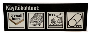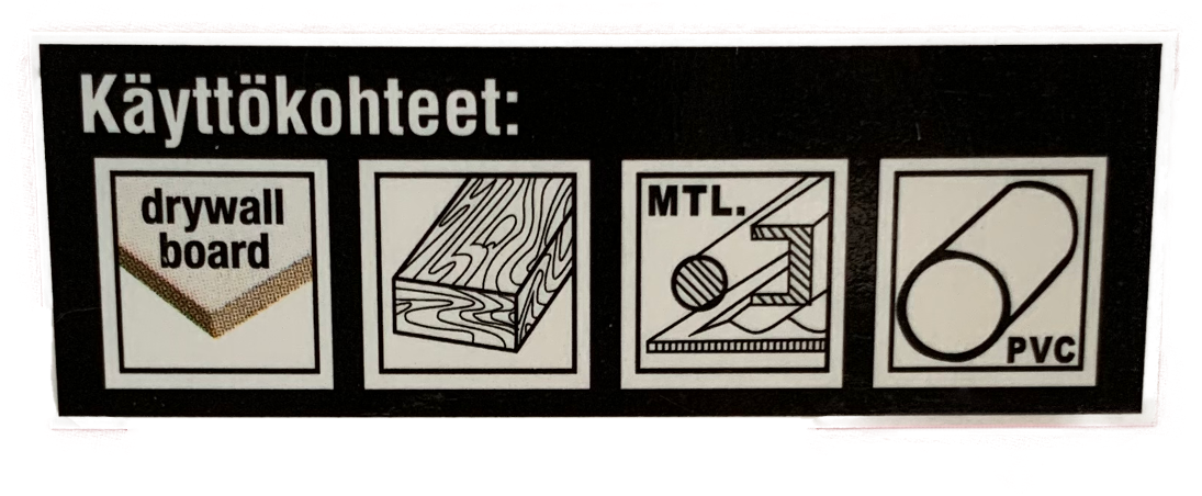 Soveltuu käytettäväksi esimerkiksi Puu, Muovi ja Metalli.