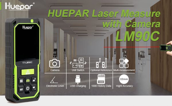 Lasermitta Huepar LM90C kameranäytöllä on ammattilaisen mittaustyökalu 90 metrin kantamalla. Huepar LM90C on ammattirakentajalle soveltuva luotettava mittaustyökalu työympäristön dokumentointiin ja tarkkaan mittaukseen, joka helpottaa ja nopeuttaa mittauksia.