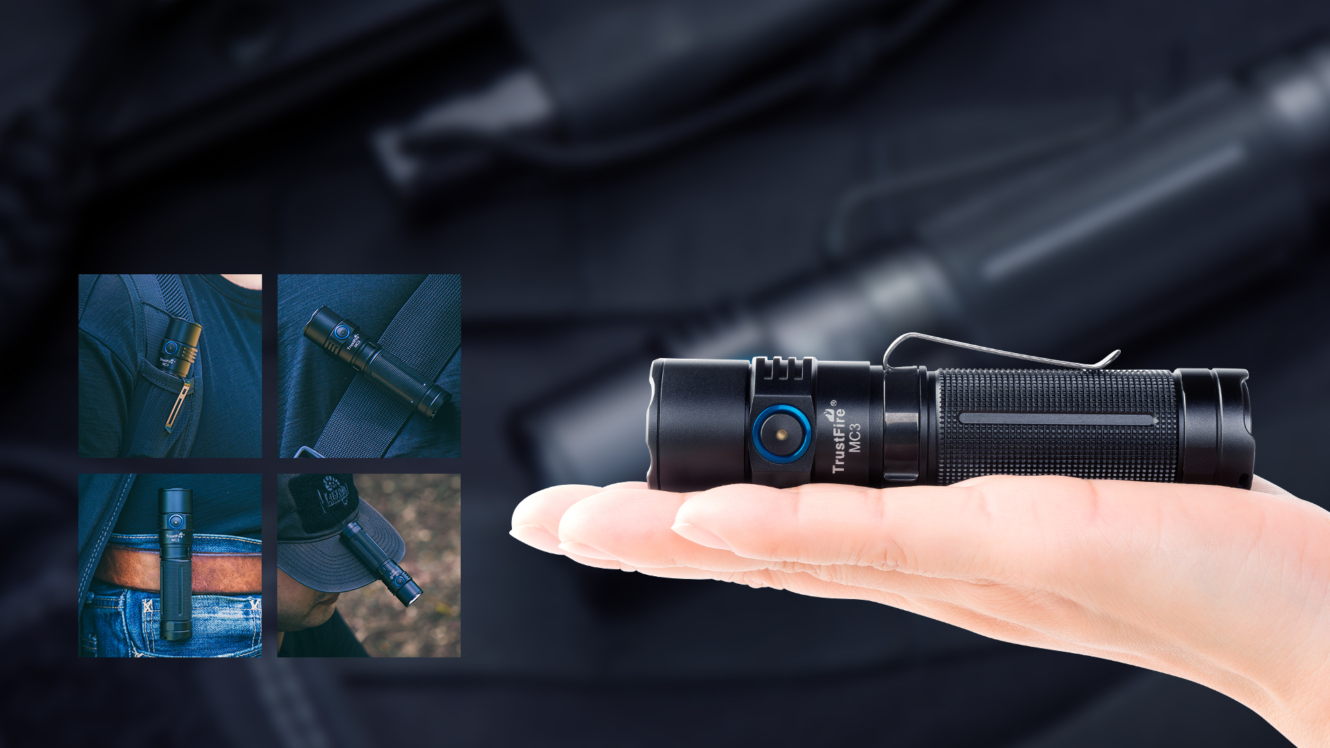 Taskulamppu Trustfire MC3 ladattava 2500 lumenen valoteholla on asiakkaiden suosikki. Tämä ultrakirkas taskulamppu mahtuu pienen koonsa vuoksi helposti taskuun ja kulkee aina mukana. Trustfire MC3 valoteho on huimat 2500 lumenia, painoa ainoastaan 128 g ja siinä on jopa 360 metrin kantaman. Trustfire MC3 on kehitetty Trustfire MC1 taskulampun pohjalta, joka on Trustfire käsivalaisimien eniten myyty malli ympäri maailmaa. Uudessa mallissa on 2,5 kertaa enemmän valotehoa uuden Led polttimon ansiosta ja huomattavasti pidempi käyttöaika, uuden tehokkaamman akun ansiosta.