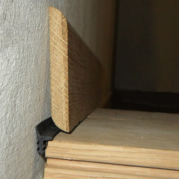 Vibro-BAND: ää käytetään tärinänvaimentimena jalkalistojen ja kelluvien puulattioiden välillä.
