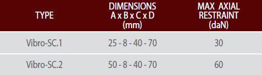 Vibro-SC tärinänvaimennusseinäliittimet koostuvat kahdesta galvanoidusta metallikehyksestä, sopivia vahvistettuina ja moduloituina. Metallikehysten väliin asetetaan vaahtokumielementti äänisiltojen poistamiseksi ja ei-toivottujen kuultavien taajuuksien läpikulun välttämiseksi.