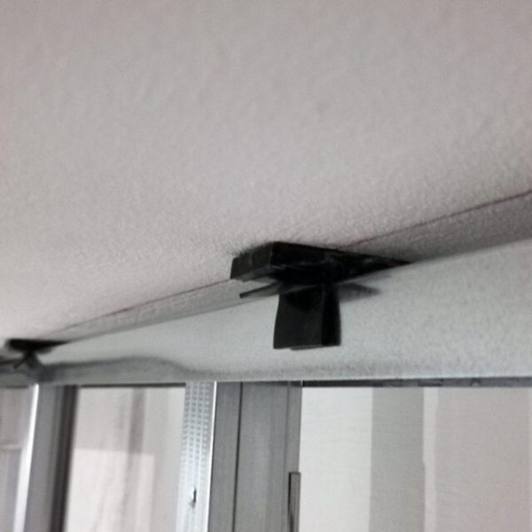 U -muotoinen äänieristyskiinnike seinän heilumisen, kattoon ripustamiseen ja lisävarusteiden ripustamiseen.