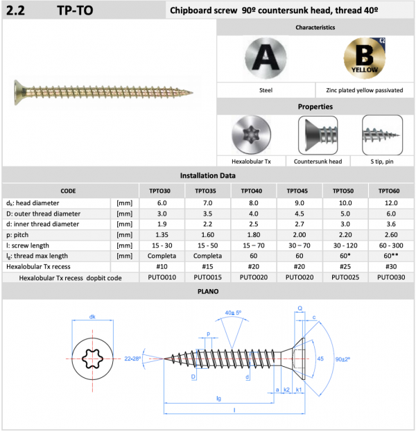 Yleisruuvi TP-TO uppokanta, useita eri kokoja